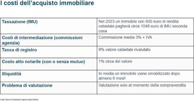 ENTRARE NEL MERCATO IMMOBILIARE COSTA CIRCA IL 7% E RENDE IL 3,3% ANNUO.
